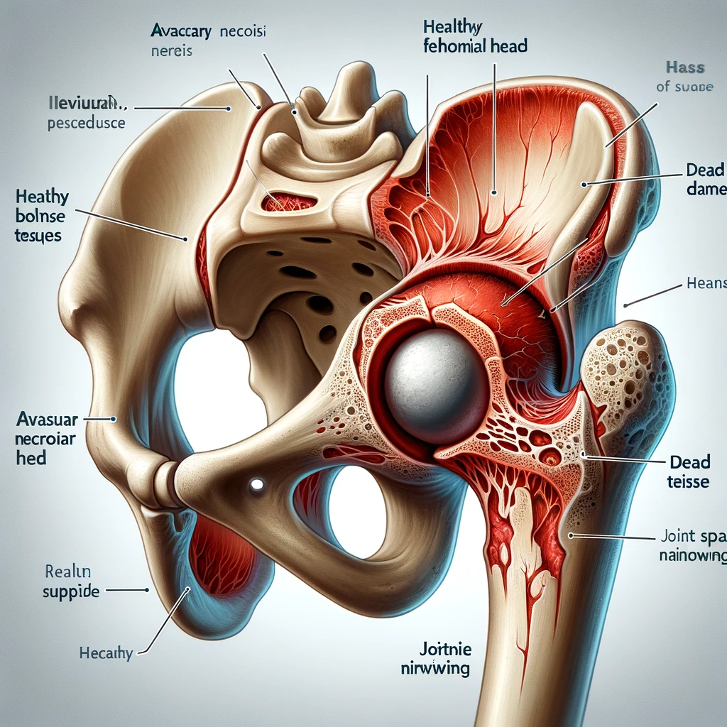 대퇴골두 무혈성 괴사는 고관절의 대퇴골두(넙다리뼈 머리 부분)로 가는 혈류가 차단되면서 뼈 조직이 괴사하는 질환이에요. 조기에 발견하지 않으면 고관절이 붕괴될 수 있어서 빠른 진단과 치료가 중요해요.